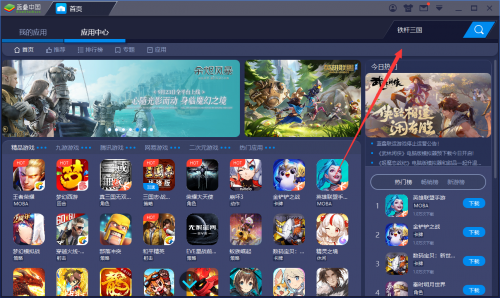 方法2:进入“应用中心”首页,通过推荐游戏,也可找到《铁杆三国》。