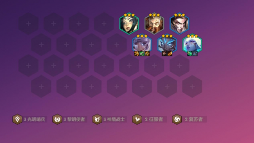 羁绊:3光明哨兵 3黎明使者 3神盾战士 2征服者 2复苏者