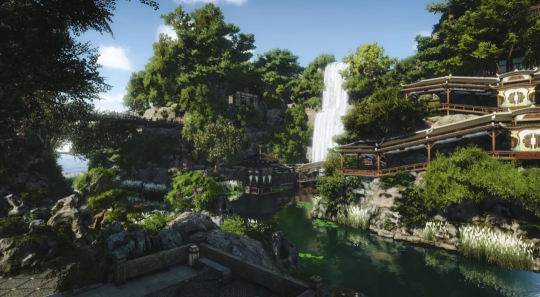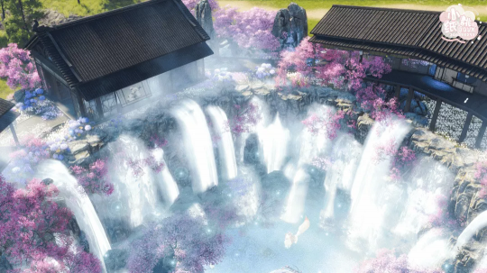 虽然有瀑布的躁动,但置身其中却能静心,静候各位逆水寒玩家过来参观静养。