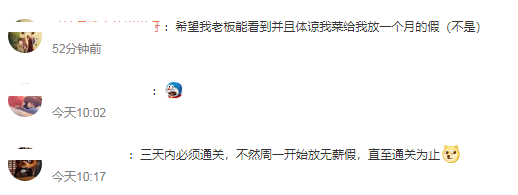 看到这条公告,大部分上班族玩家的内心都很难不泛起酸意。当然也有许多网友指出了问题所在——“四天时间过《艾尔登法环》一周目,也太瞧得起手下员工了吧?”紧接着“通不了关算调休”、“通不了关开始休无薪假”等调侃,又让气氛活跃了起来。
