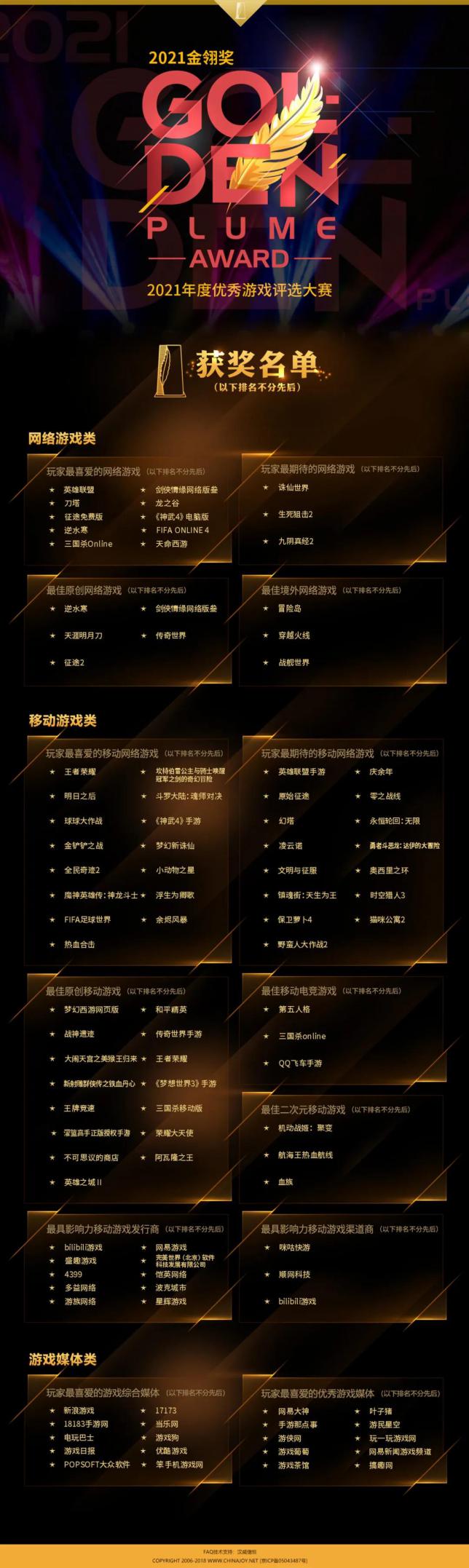金翎奖创办至今已有十六年悠久历史,各类奖项均建立在千万玩家、读者以及广大游戏从业人员的真实投票基础上,是国内众多游戏评选中最具含金量的评选活动之一,有着游戏界的“奥斯卡”之称。