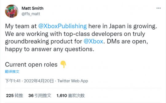 Xbox Game Studios发行部门(负责和第三方开发商合作)主管Matt Smith最近发推,透漏他的日本工作团队正在扩张,寻找世界顶尖人才为Xbox开发“真正突破性的产品”。