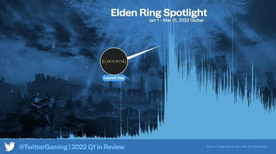 而在端游领域,《艾尔登法环》无疑是2022年上半年中最受瞩目的游戏。游戏发布引起的轰动,让它快速跻身Twitter游戏讨论度榜单第七名。而玩家对《艾尔登法环》的喜爱也体现在销量上。据角川集团业绩报告显示,截至3月31日,《艾尔登法环》全球总销量已超过1340万份,超过发行商预期销量两倍。