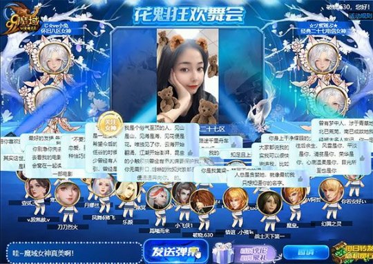放起音乐,斟满酒杯,走入舞池,尽情摇摆!你以为我是来到了夜店?实际上我是在给女神打CALL!《魔域》“浮香仙梦”花魁赛迎来最具激情的狂欢舞会:虚拟舞池火热开放,花魁赛跨服榜单前100名的女玩家们均可报名争夺有限名额,在舞会大屏幕上秀出自己的颜值与才艺,化身DJ带领大家开启一场拉票、娱乐两不误的盛大派对!其他玩家则可在舞会上发送弹幕,既能与心爱女神亲密互动,又能为女神拉票应援助其登上花魁宝座,这样两全其美的好事怎能错过!当然,花魁狂欢舞会除了有甜蜜告白,我们还记录了一些搞笑名场面――