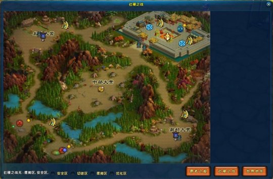 在新玩法中,整个大地图将会分成三层板块,系统分配出生区域后,在宣战时间内可进行宣战。宣战后,以县、郡、州、关口的顺序进行宣战攻打,后续竞拍宣战只能选择自身占领城池或历史关口相邻的城池!在攻打城池时,会展开领地争夺战的战场玩法,攻打或防守领地可以获得领地战绩,占领城池是获得奖励的首要方式。每周还可在帮会地图中开启城池副本――天绝峰,拥有城池的帮会可免费开启。