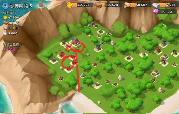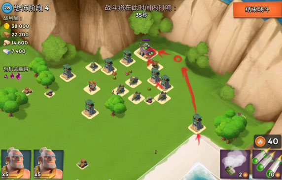 箭头登陆,打掉大加农,引导左边的补给(最好是引导地板,不然前面的拆掉补给后面的就会走散),然后就直接引导基地,路上给右边红圈冰冻,到基地时应该会不少红血,迅速扔医疗就没什么问题,lz30野人过这关死了12