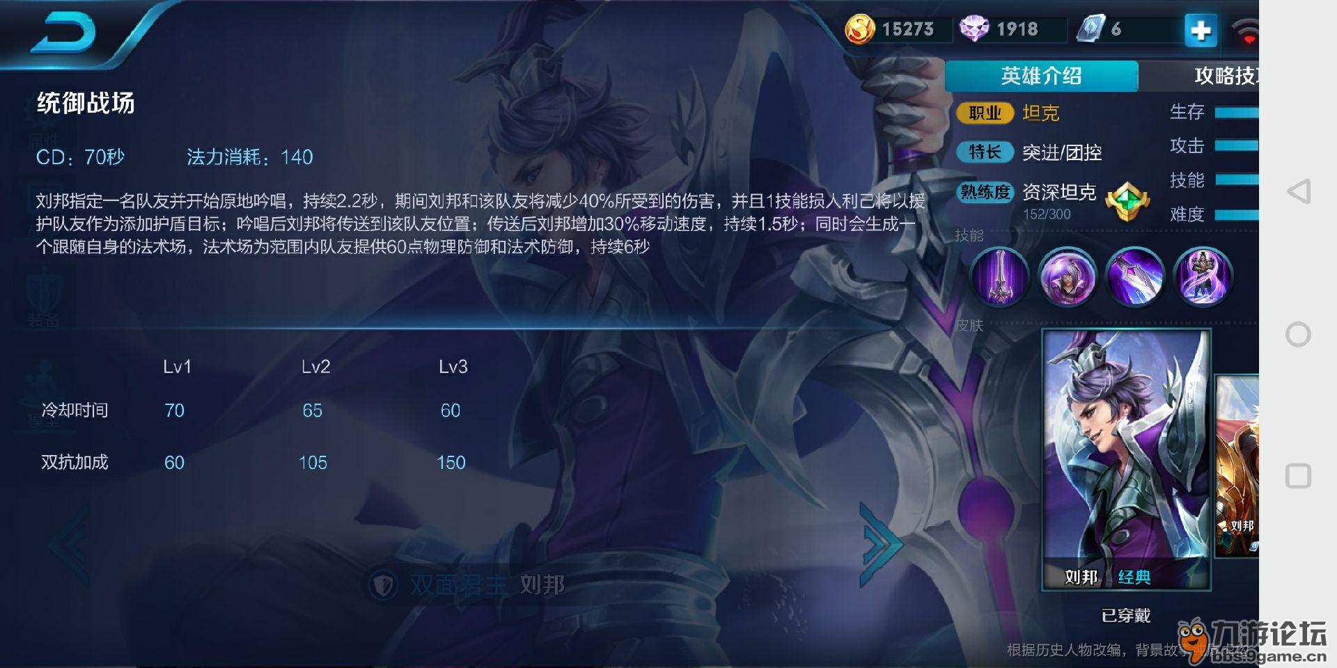 技能解析 本技能是刘邦的主要输出技能,附加最大生命值的法术伤害则刘邦只需出纯肉即可,不必像其他坦克如夏侯惇,苏烈等还需要出黑切增强输出,这使得刘邦的生存能力很高。并且本技能对付最近热门的英雄程咬金有奇效,被程咬金恶心的友友们祭出我们的刘邦大大,完美克制程滚刀。