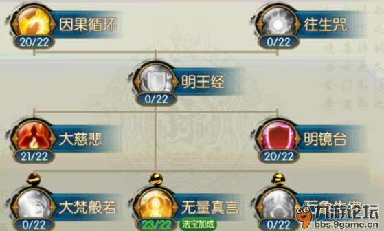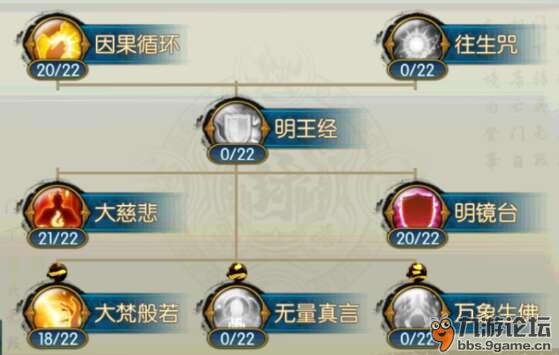 寂灭:第一卷 降魔秘言4点 菩提荫佑3点 神魔妄念3点(天舞降命中+20%) 无常轮渡4点 地藏心经8点