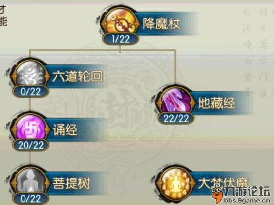 首先:大梵流,此流派我对它的定位是,远程狙击输出型。技能加强以六道轮回,诵经,雷音法谕这三个远程技能为主,镇魔天书第五卷佛尊法印也是体现了这个思想,重点加强的就是这三个技能的攻击。从镇魔各卷天书上看,加强的技能除了这三个重点技能外,还有大梵般若及因果循环。 别说把降魔杖加满了,那是对技能点的一大浪费,天书对降魔杖的加强只是些气血和命中之类,这些属性的获得途径太多了。