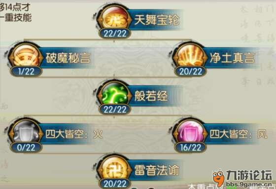技能剩下的技能点除了把已加的主要技能加满外,把明王经,四大皆空:风,四大皆空:火,些技能尽量加满。破魔秘言1点就够。