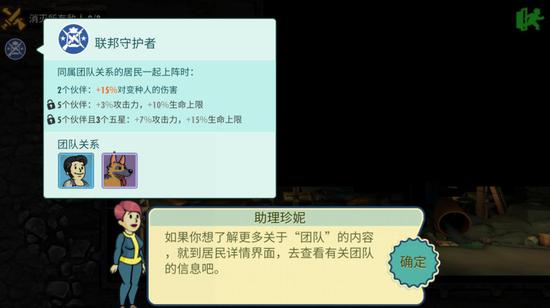除了装备等级提升外,同属团队关系的居民上阵还可以带来战斗加成,比如联邦守护者阵营的2个以上的角色在同一个队伍中,就能激活对变种人的伤害、增加攻击力和生命上限等效果,让战斗体验增加了更多的策略性。