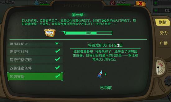 在游戏剧情上,《辐射:避难所Online》选择了与关卡任务融合的方式,这样玩家们既不用投入大量的时间阅读文字,也可以在战斗的同时了解背景故事,还通过势力和广播等形式增加支线任务,提高了游戏的代入感。