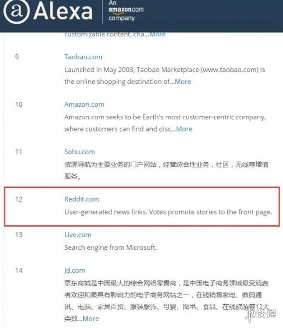 Reddit的访问量排在在搜狐和京东之间,全球第12位