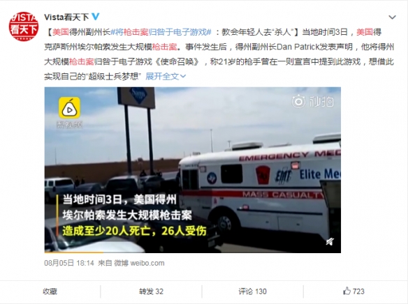 美国本周接连发生两起大规模的枪击案,一起位于得克萨斯州埃尔帕索市,另一起位于俄亥俄州代顿市。但在这两次大规模枪击案发生之后,美国总统特朗普发言时再次把责任归咎于电子游戏。