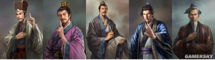 上图是《三国志12》重的曹营五谋臣立绘,只要是有些常识的人,就能在光荣各式“彩蛋”的引导下轻松认出他们到底是谁。(按照从左到右的次序)