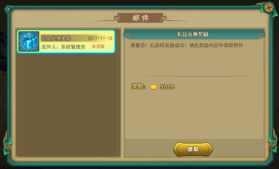 3.礼包兑换后请在邮件内提取。便可获得相应礼包。